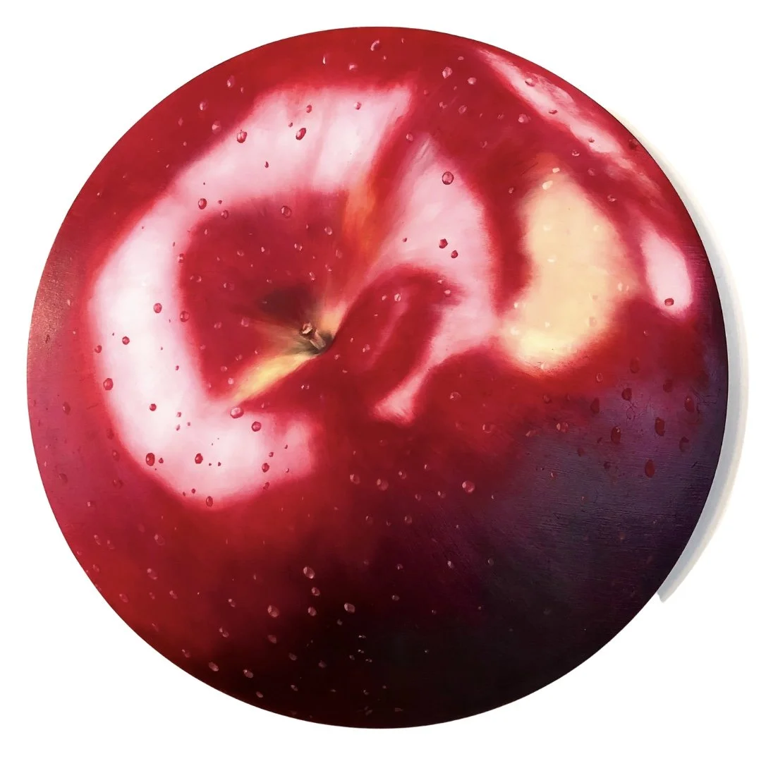 Utilizing the circular shape of the panel, I seek to create a refreshingly modern twist on still life painting.